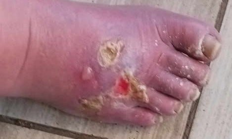 WARNING- Photo Graphic Blisters popped and drained (Cellulitis) causes, diabetes and veinous insufficiency