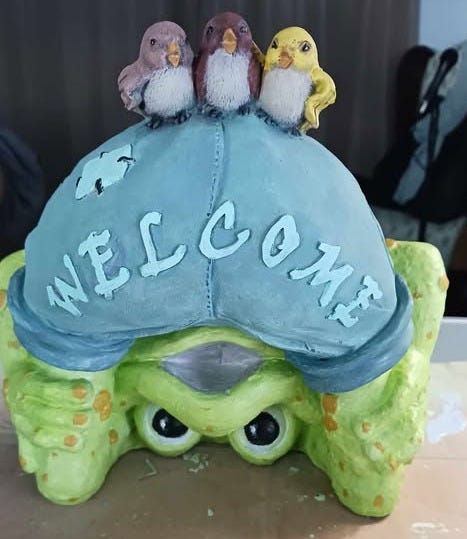 Outdoor statue- repaired and painted by Author for neighbor (work gifted)